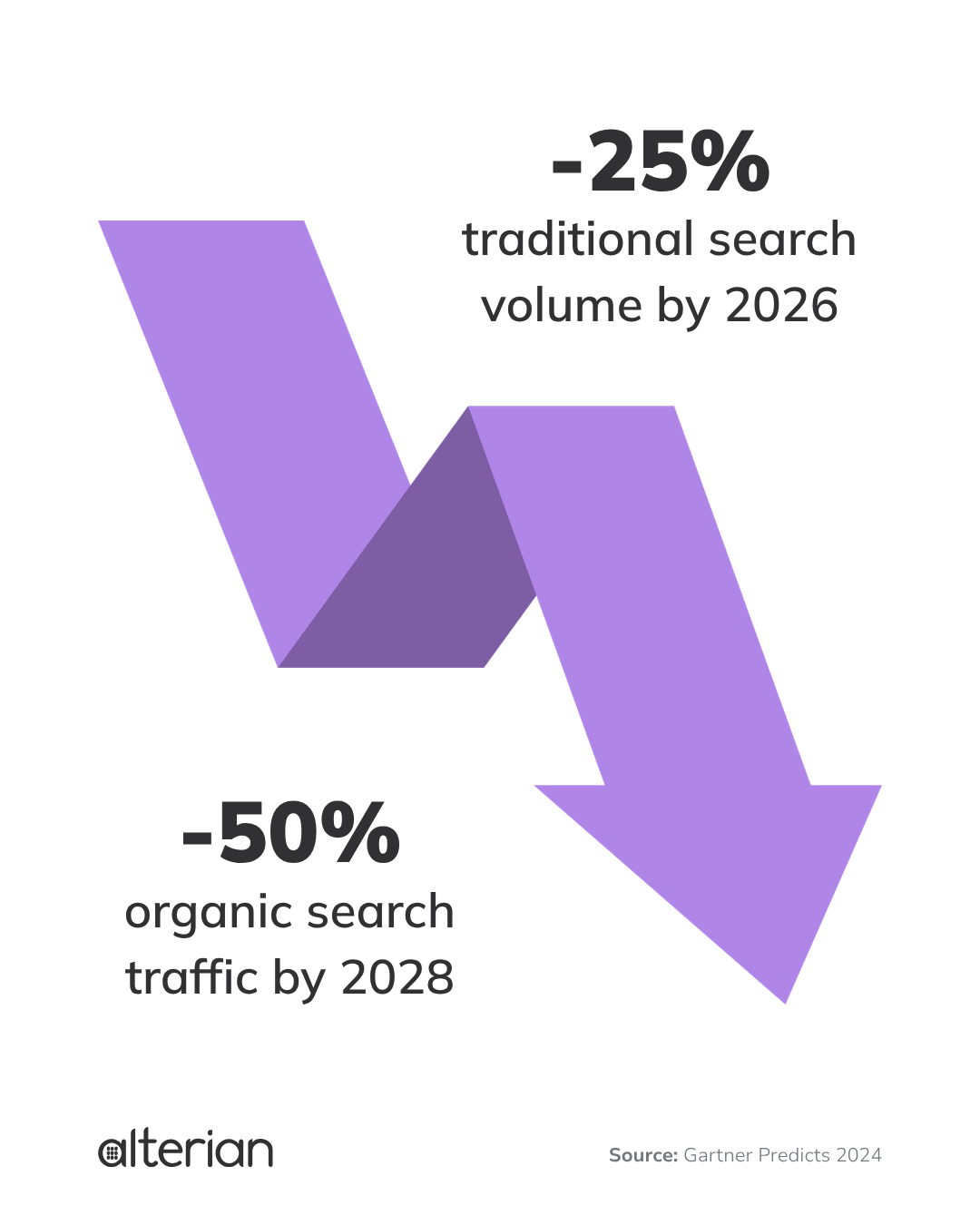 Gartner predicts the shift will continue to accelerate, with traditional search volume expected to decline by 25% in 2026 and organic search traffic dropping by more than 50% by 2028 as generative AI becomes the default discovery layer.