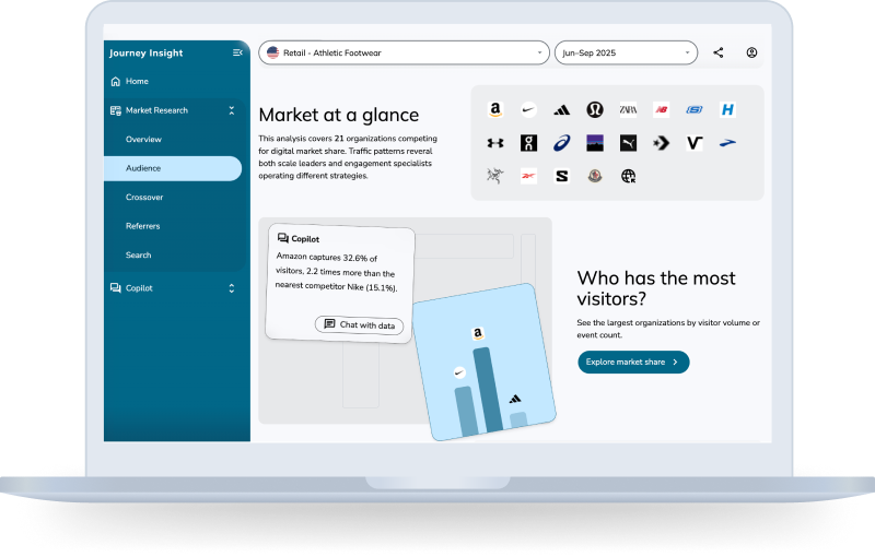 Discover how Journey Insight reveals the full digital customer journey across brands. Explore key features to unlock visibility, competitive context, and actionable intelligence.